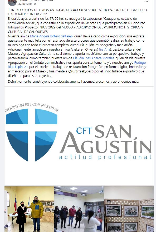 Exposición "Cauquenes espacio de convivencia social" Curaduria, guión, museografía y mediación |